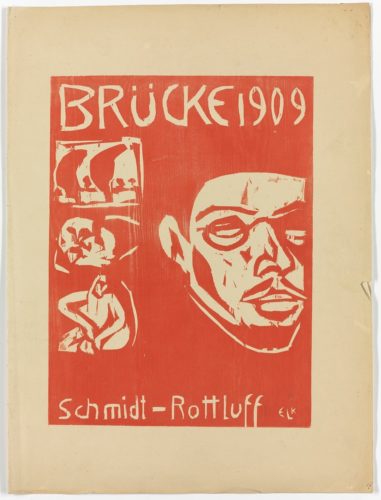 Mappe fra 1909 med grafikk utgitt av den tyske kunstnergruppen Die Brücke (1905-13). Verk av Ernst Ludwig Kirchner og Karl Schmidt-Rottluff.