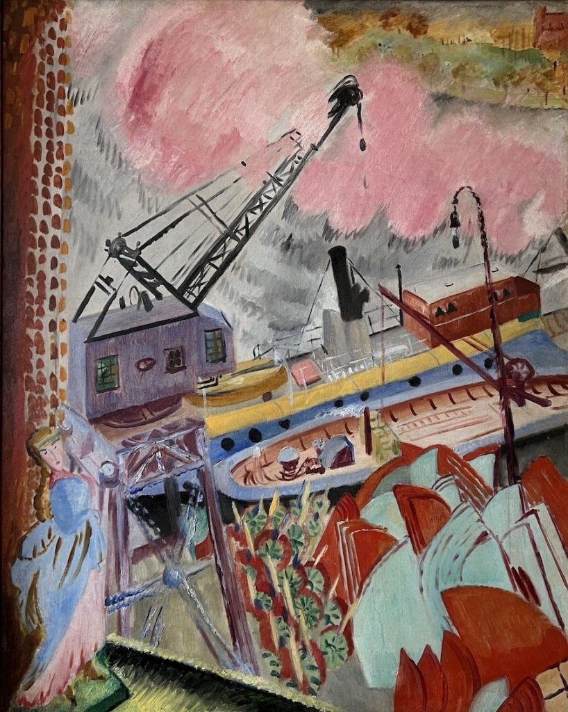 Hjertén, Sigrid Skördemaskiner og violett lyftkran Hjertén, Sigrid, 1916Oil on canvas, 116x89 cmThe Munch Museum