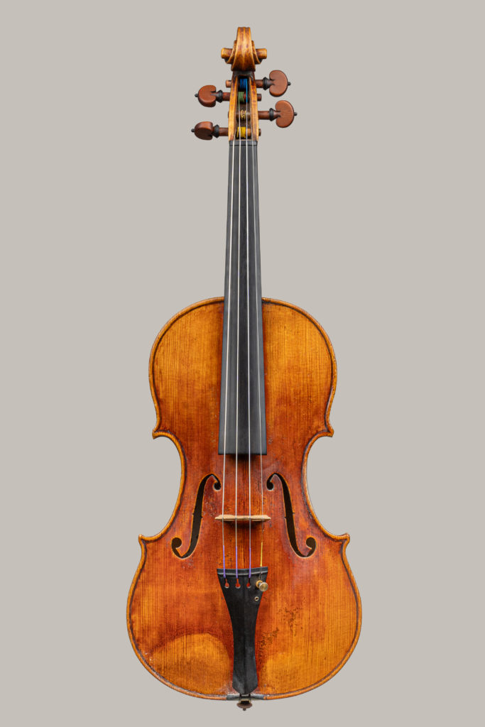 Fiolin laget av Andreas Hellinge i Geneve i 2007. Instrumentet er til utlån hos Norges Musikkhøgskole og spilles av Simen Haufmann.