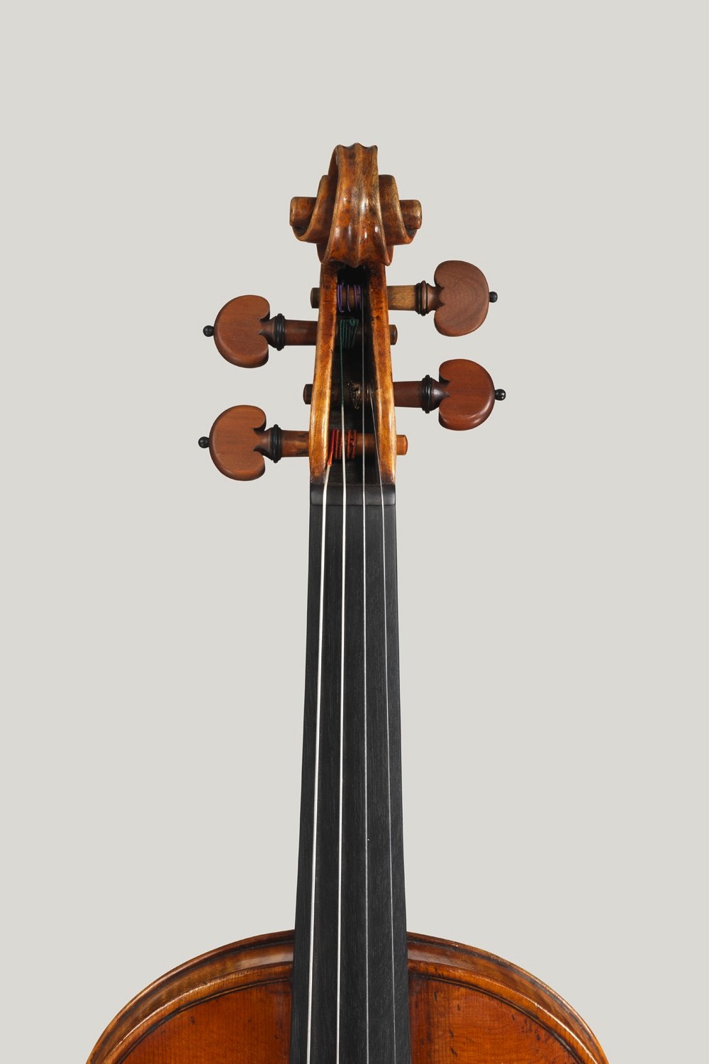 Nok en Milano-fiolin fra Guadagnini av noe senere dato. Dette instrumentet fra 1754 er kanskje det best bevarte av de tre eksemplarene som finnes i Dextra Musica-samlingen, med en nesten helt dekket av den flotte røde lakken som karakteriserer denne perioden av hans arbeide. Man kan her se de detaljerte aspektene i Guadagninis teknikk som gjør ham unik. Hans håndverksmessige evner nådde et høydepunkt i denne perioden, ble deretter meget tilgjort i løpet av hans liv i Parma, og gjenoppsto i ny, styrket men friere stil gjennom de siste årene hans i Torino. (Les mer under bildet).
