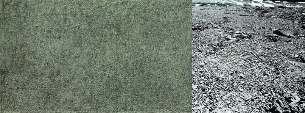 Patrick Huse (f.1948) orienterer seg innen et vidt spekter av medier og teknikker, blant annet har han arbeidet med fotografi, grafikk, tegning, video, maleri og tekstbaserte prosjekter. Motivisk og tematisk hører han hjemme i forlengelsen av en lang, nordeuropeisk landskapstradisjon og har særlig fokusert den karrige, mørke og stemningsfulle nordiske naturen. Stone Surface (2003) kan i så måte oppfattes som et karakteristisk verk; på elegant vis kombinerer Huse her maleri og fotografi, og antyder landskapets tekstur og stofflighet like selvfølgelig i begge teknikker.