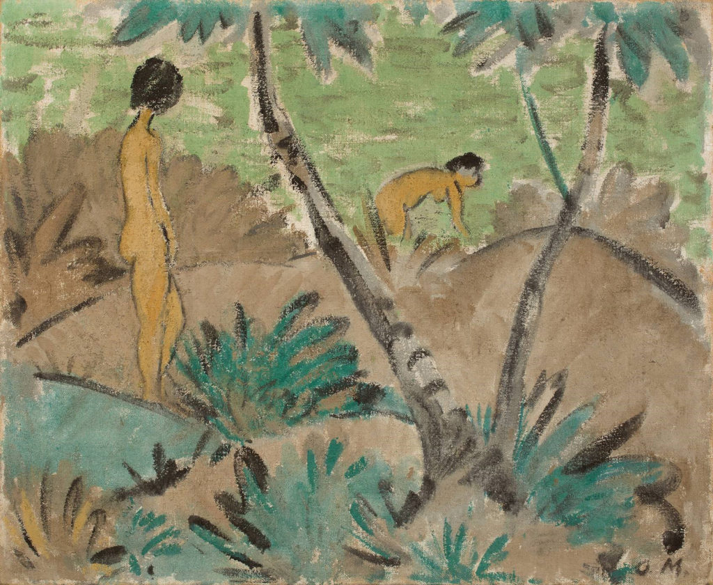 Otto Mueller (1874-1930) var medlem av kunstnersammenslutningen Die Brücke fra 1910-13 og regnes blant de tyske ekspresjonistene. Deres kunst kjennetegnes av kraftfulle farger og en røff, heftig malemåte. Slik sett skiller Mueller seg i noen grad fra sine kunstnervenner idet han har en mer avdempet, harmonisk koloritt, og ofte et mer lyrisk uttrykk i sine bilder.