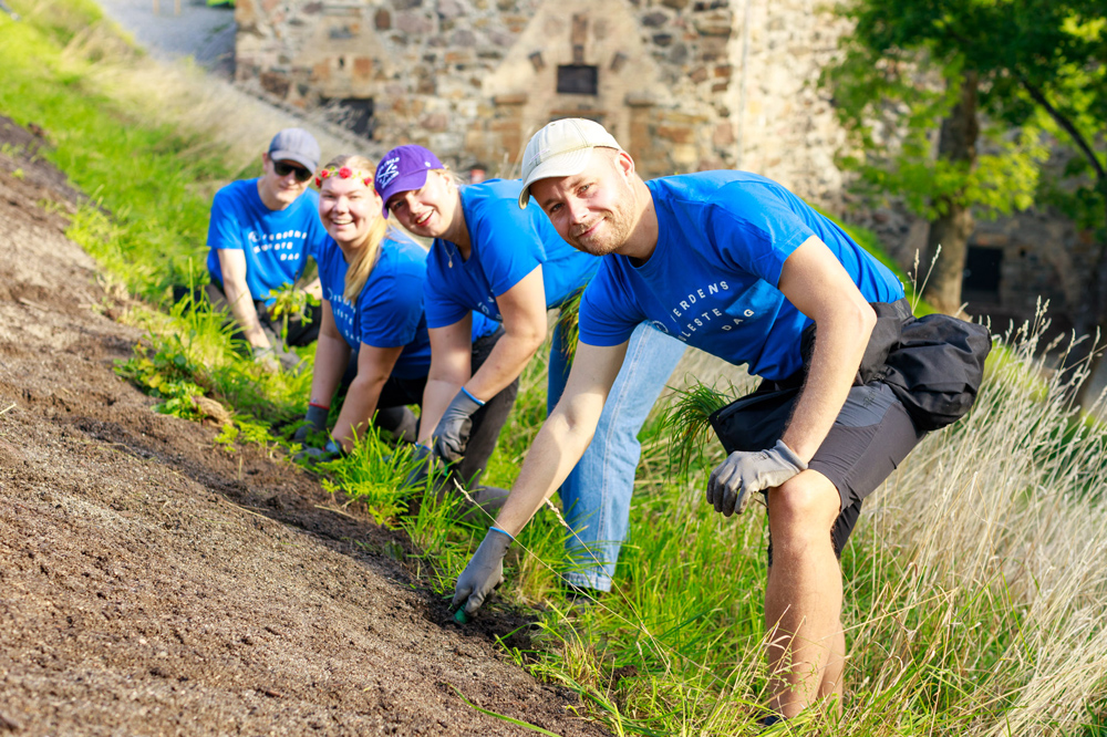 Et prosjekt drevet av frivillige. Her med frivillige "villblomst-ambassadører" på Akershus festning under Verdens Kuleste Dag i 2024. (Foto: Darja Olsevskaja)