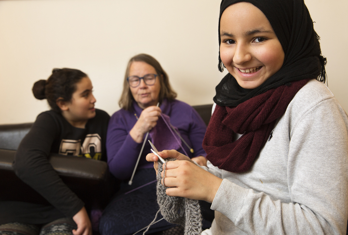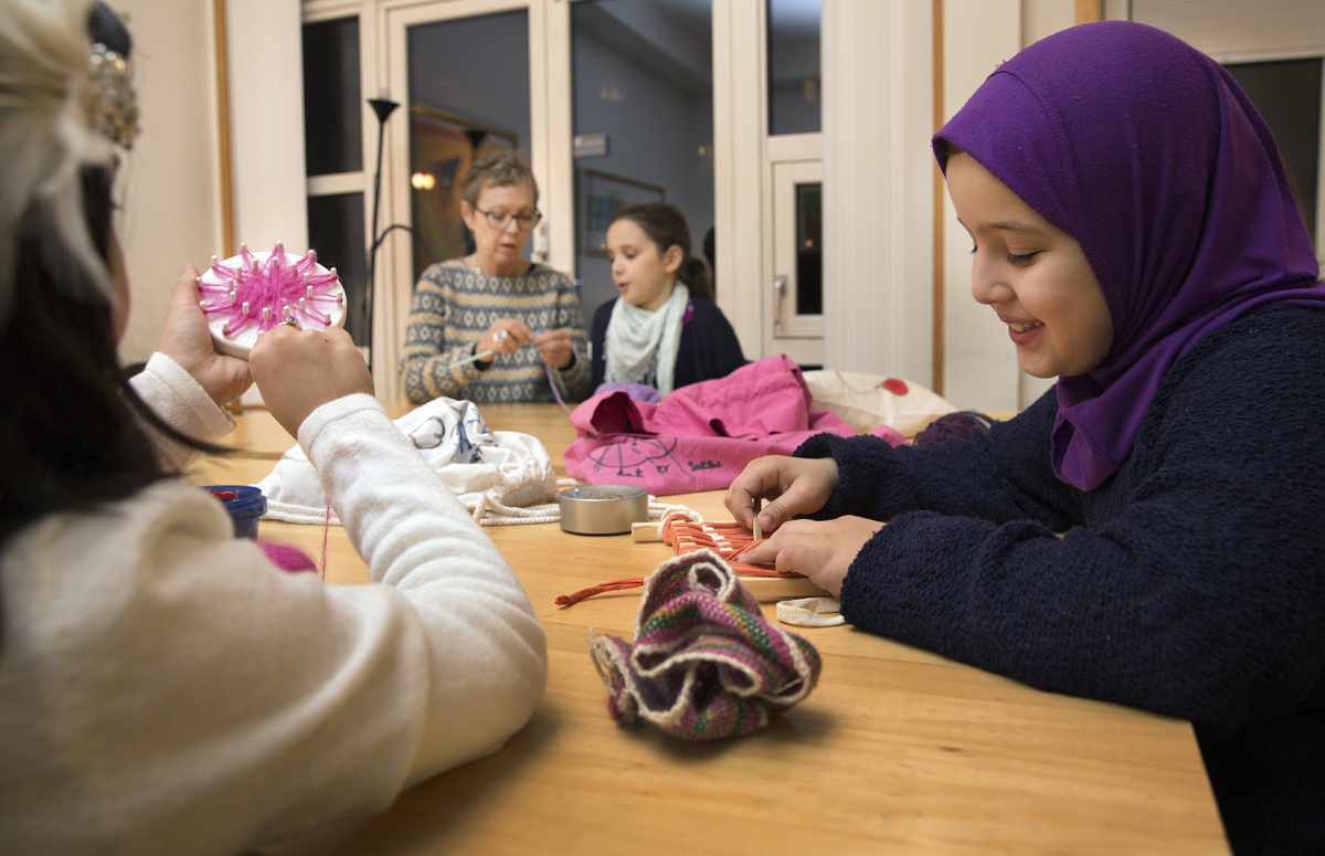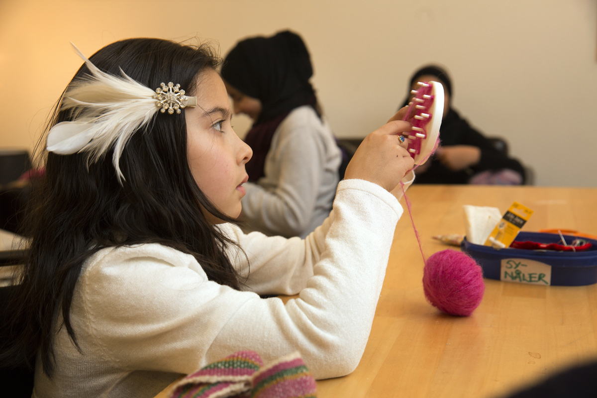 I et lite lokale i Gamlebyen i Oslo strikkes, hekles og veves det. Garn i alle farger og tykkelser ligger på hyllene sammen med esker fulle av glitrende og skinnende perler. Rundt 20 jenter med innvandrerbakgrunn har funnet veien hit en kveld i desember 2015. Det er god stemming. Alle har funnet frem håndarbeidet sitt og er i full gang med å få ferdig det som skal bli julegave til søsken eller foreldre. Det er siste treff i Gamle Oslo Husflidslags Barnelag før jul.