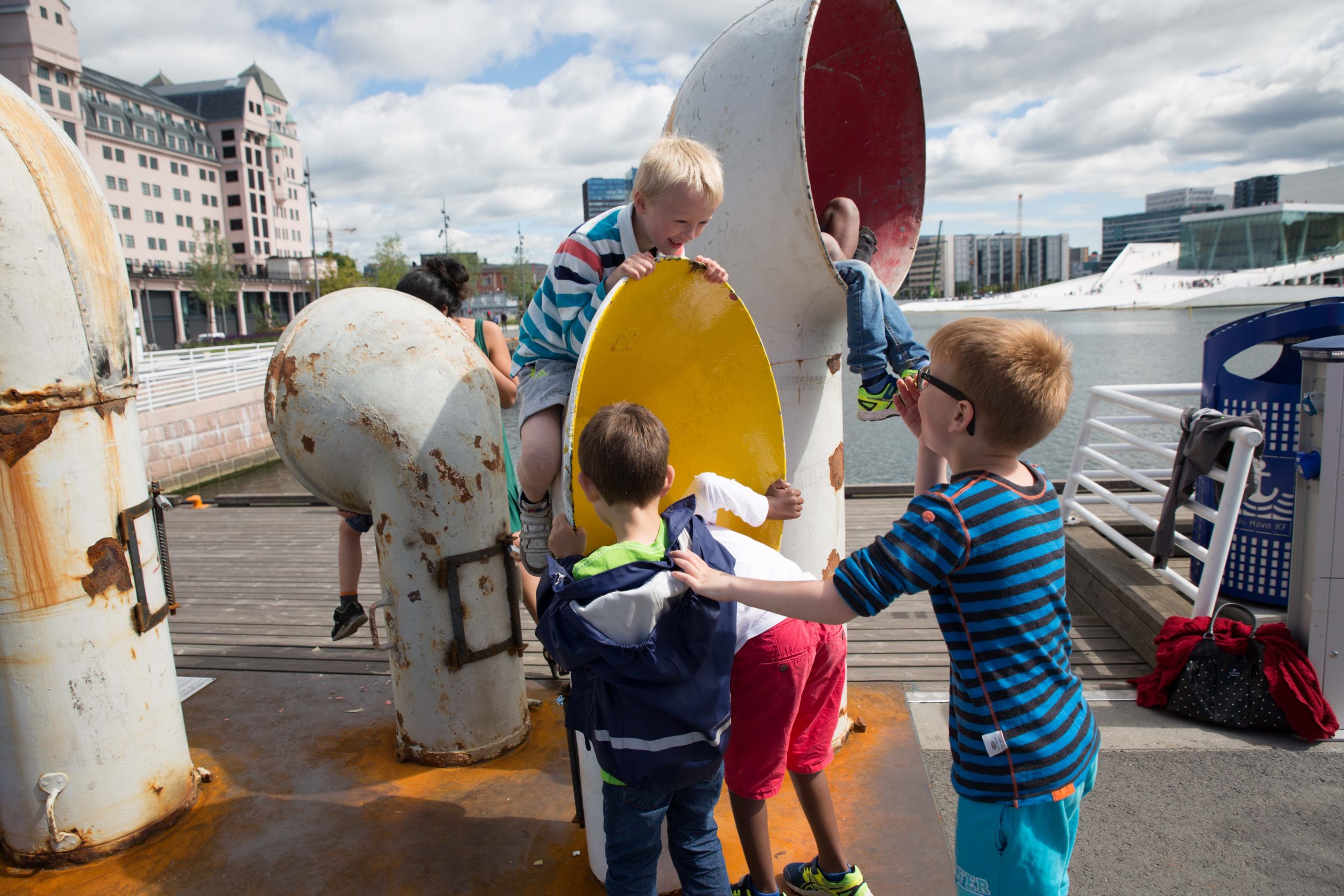 En del av prosjektet er formidling av ballastplantenes og områdets historie. Historien får du i “lytterørene” på bryggekanten.