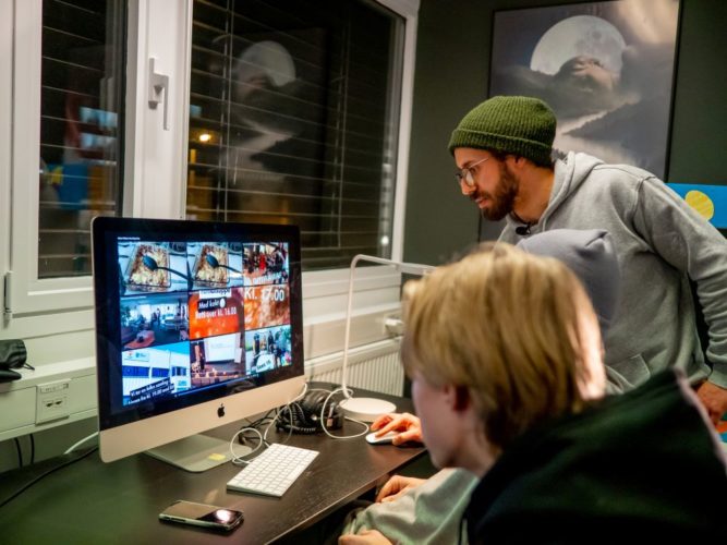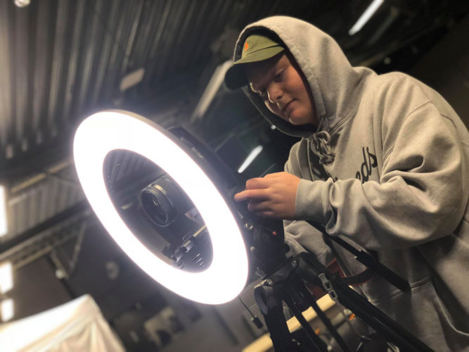 – Utstyret vi har kjøpt er ganske avansert, men det er ikke noe problem. Ungdommene skjønner det veldig raskt, sier Magnus mens han rigger opp en lampe.