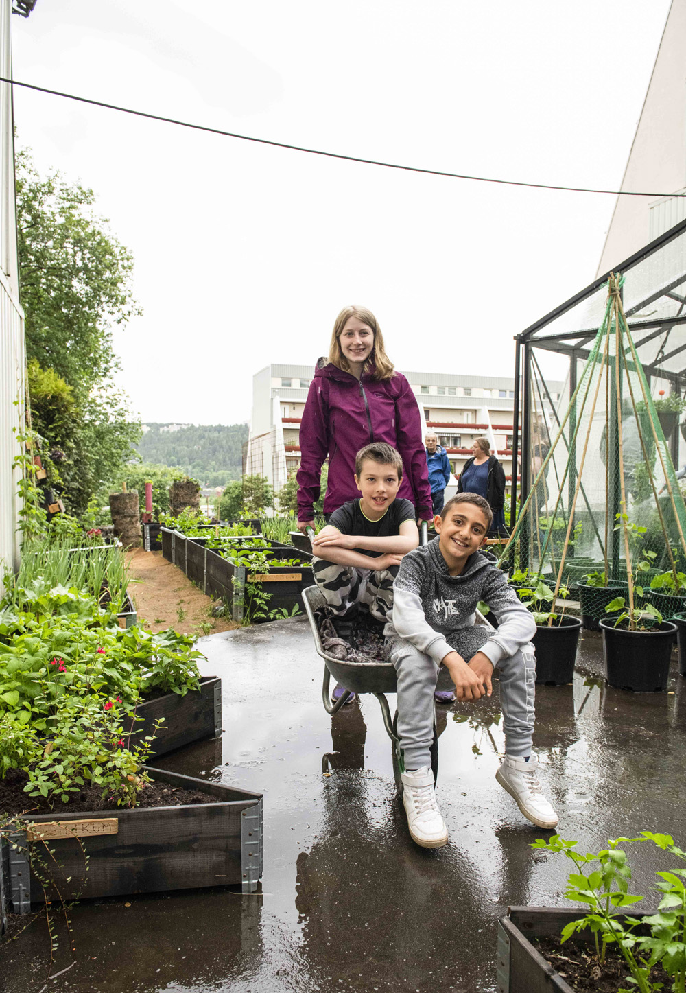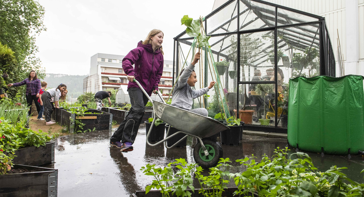 Her kan alle som vil være med å bidra, og barna inviteres med på aktiviteter og plantekurs. Alt som dyrkes gis bort gratis til beboerne i sameiet.