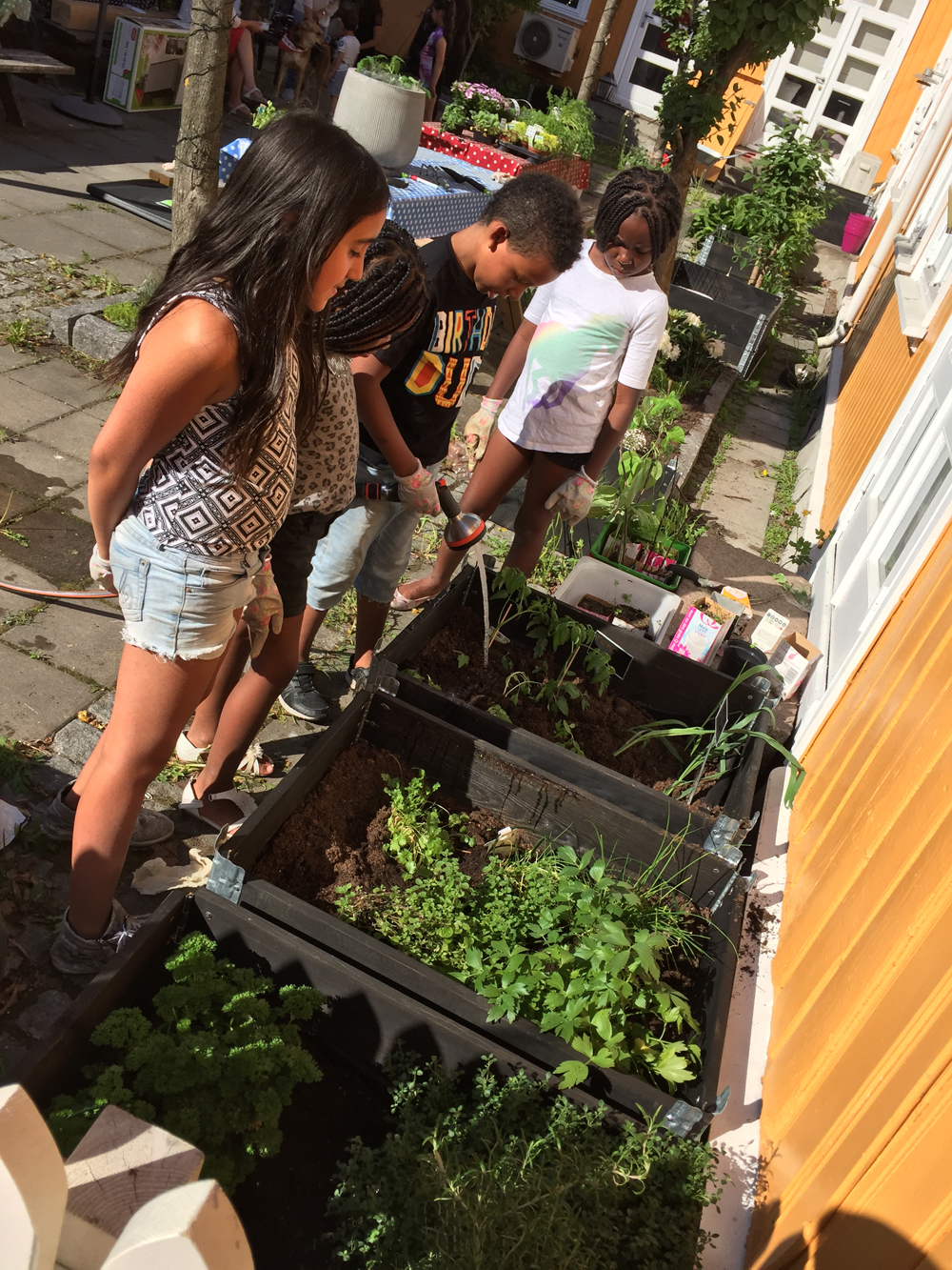 Barnas stasjon i Drammen ønsket å etablere en kjøkkenhage i bakgården. Bakgården er veldig hyggelig, og mange av brukerne har ikke hage der de bor men ville gjerne drive med hagearbeid.
