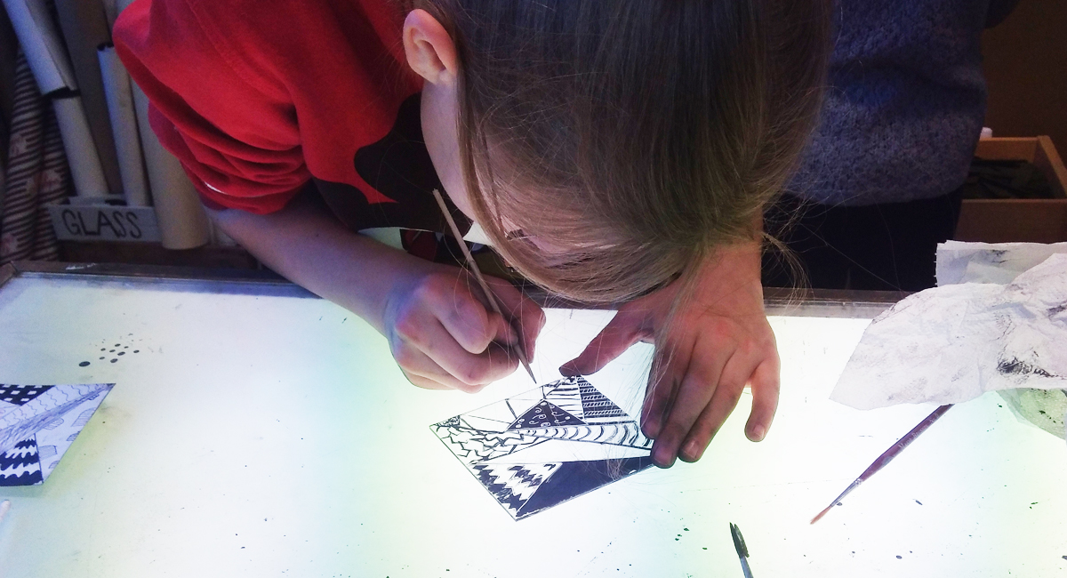 I januar 2021 arrangerte galleriet kunstworkshop med glass som tema i samarbeid med kunstnere. (Foto: Sigrid Blekastad)