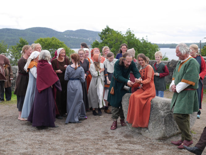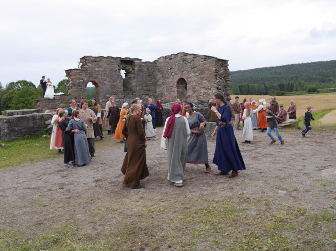 Det historiske friluftspillet settes opp ved ruinene av St. Margaretakirken i Maridalen – som sammen med naturen, åkrene og Maridalsvannet utgjør en vakker kulisse i sommerkvelden.