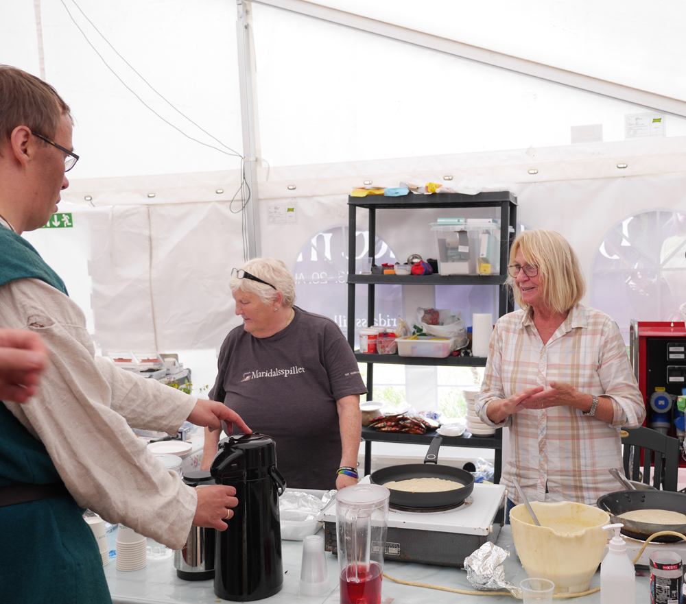– Det er kjempegøy å være med på Maridalsspillet. Det er så hyggelig å treffe igjen folk fra år til år. Vi blir et lite samfunn. Her er det fin stemning og god atmosfære. Man får en god følelse av å skape noe sammen, sier Markus Scarth Tønseth, som spiller forteller og prost.