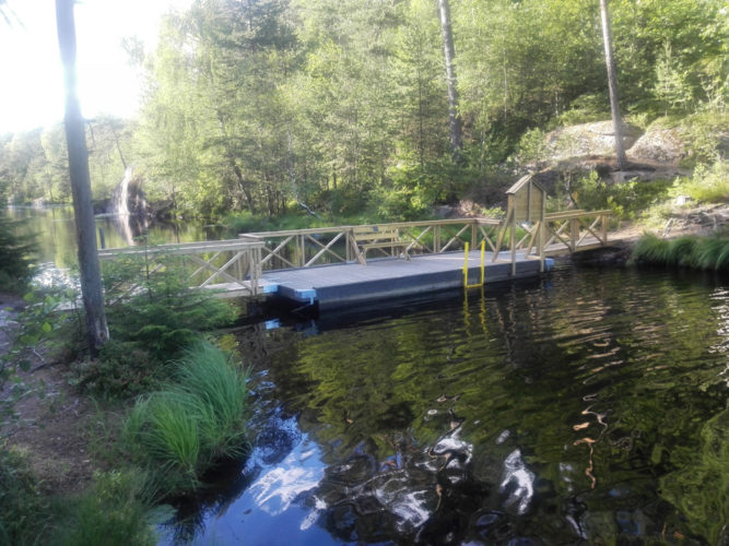 Høsten 2015 sto en ny flott bru ferdig med badetrapp og livbøye, takket være stor dugnadsinnsats fra Skien Turlag.