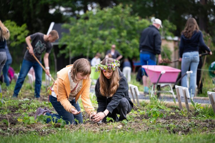 Her har hvert klassetrinn fått sitt eget bed hvor de dyrker grønnsaker, urter og blomster til humler og bier.