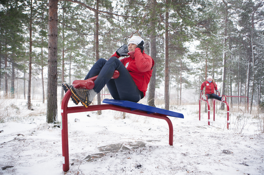 Det trenger ikke være sommer for at treningsapparatene skal brukes. Bildene er fra desember 2012. (Foto: Sverre Chr. Jarild).